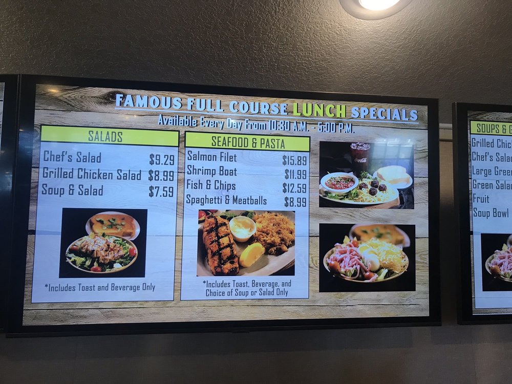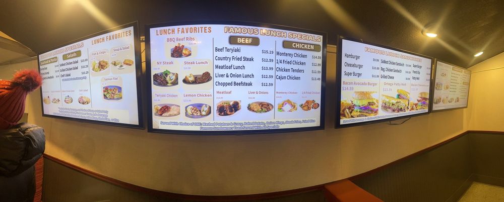 Sundowner’s Family Restaurant located in Fontana, CA, is a hidden gem offering simple homestyle American cuisine. With a diner-like ambiance from the 80s or 90s, it is a popular spot for families and groups. The menu includes a variety of lunch specials, from Chef's Salad to Salmon Filet, all at reasonable prices. Customers rave about the generous portions and friendly service, with many mentioning their favorite dishes like steak and shrimp with mashed potatoes. The cafeteria-style ordering process allows for a personalized dining experience. Overall, Sundowner’s is praised for its good value, comfortable seating, and consistent, quality food. Give it a try if you're in the area and experience the nostalgia and delicious meals for yourself.